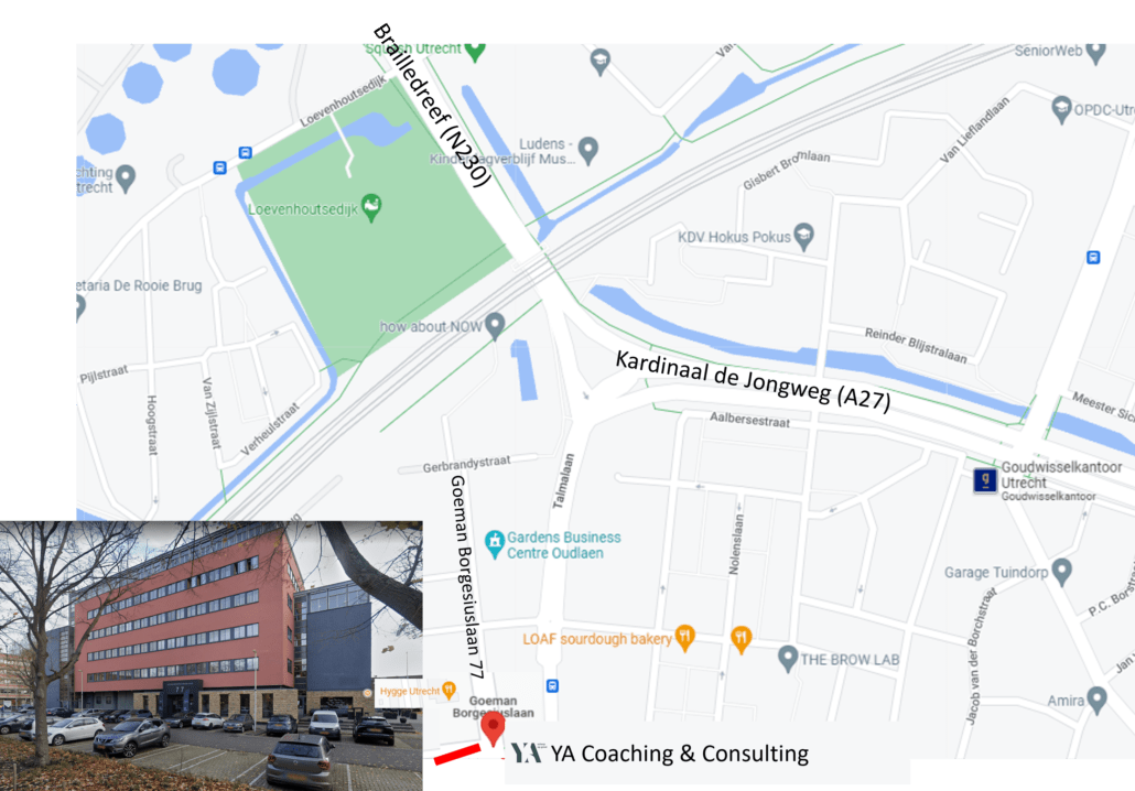 Kom je met de auto? Rondom het gebouw is veel ruimte om op straat te parkeren (EUR 5,50 p/u) of via Easypark (EUR 2,50 p/u). Er zijn meerdere parkeerplaatsen in de omgeving met de naam ‘Goeman’. Die voor de deur met het goedkoopste tarief heet ‘Toogethr -De Goeman’. Let er op dat je van te voren een account aanmaakt en de optie ‘kenteken-herkenning’ ingeschakeld is!